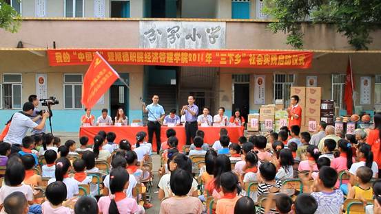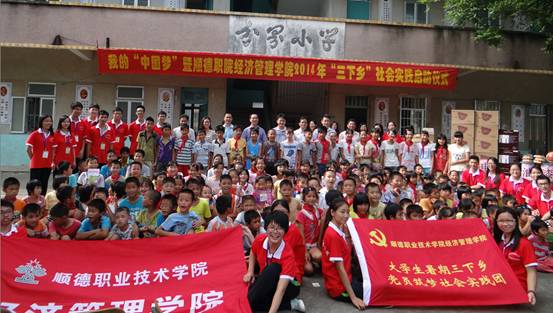 7月11日下午,顺德职业技术学院经济管理学院2014年大学生暑期“三下乡”社会实践启动仪式在湛江市遂溪县遂城镇分界村分界小学隆重举行。湛江团市委副书记郑克芬、学校部负责人许剑飞;遂溪团县委书记李裕宏、副书记陈春燕;遂城镇党委委员卜永佳、分界村党支部书记陈兴群;德赢经济管理学院团委负责人及30名师生志愿者以及分界小学全体师生共约300人参加了本次活动。