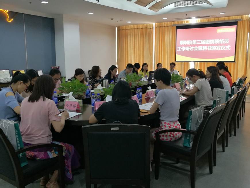 5月15日上午,顺德职业技术学院第三届图情联络员工作研讨会暨聘书颁发仪式在图书馆六楼会议室顺利召开。图书馆馆长张彦静、各二级学院图情联络员及图书馆全体专业馆员参加了会议。