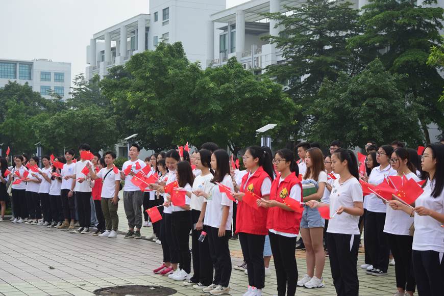 红旗飘扬、赞歌嘹亮,在场的全体师生共同用最真挚的情感唱响《歌唱祖国》,向伟大的祖国真情告白,现场还有同学们的乐器演奏以及18酒管9班全体同学以快闪的形式带来队形表演。今年是五四运动100周年,同时也是新中国成立70周年,以及德赢建校20周年。18酒管9班的同学分别排出了“100”、“70”和“20”的队形以纪念这个有意义的年份。希望广大学生继续发扬艰苦奋斗的精神,担当起当代青年的神圣使命,为共同创造顺德职业技术学院辉煌灿烂的明天,为祖国繁荣与民族复兴共同努力。