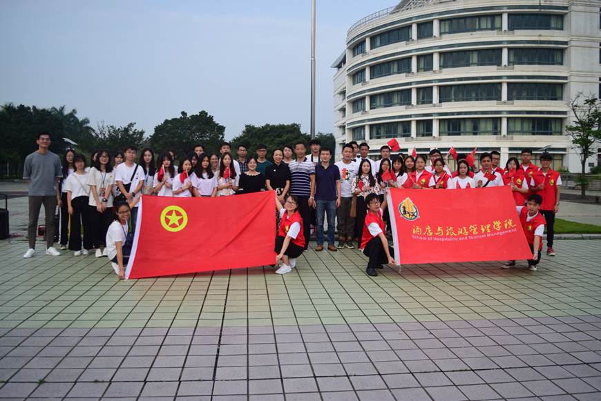 5月22日,为了弘扬爱国主义精神,引导同学们把自己的理想追求与民族命运、祖国发展结合起来,酒店与旅游管理学院于于信合广场举办了“祖国在我心中”升旗仪式及《歌唱祖国》快闪活动,出席本次升旗仪式的嘉宾有学校党委委员、酒店与旅游管理学院党总支书记甘慕仪、酒管学院全体辅导员、此外还有校团委和各兄弟学院团委代表、18酒管9班及酒管团委全体成员。