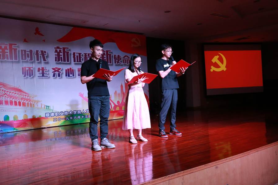 随后,各教研室老师进行精彩纷呈的节目表演,由文化素质教育中心邓睿卓、杨毅路、郑海曙三位老师合唱《把一切献给党》《再一次出发》唱出了共产党人“不忘初心、牢记使命”的忠心和豪迈。校团委全体老师带来诗朗诵《致青春》,老师们整齐的服装、恰好的配乐、真挚的感情,赢得了大家一阵阵热烈的掌声。学院办公室全体老师带来的小合唱《年轻的朋友来相会》,他们精心准备节目就是用实际行动致敬党的生日。吴舒婷副院长的诗朗诵《旗》焕发着鲜活生命力,让我们对“不忘初心牢记使命”有自己独特的理解与追求。文秘教研室强金国老师带来一首《蒙古人》,他苍劲有力富有穿透力的歌声赢得现在老师们阵阵欢呼声;社工教研室带来《社工之歌》让我们重新认识了社工这个职业深刻的内涵和定义。数学教研室邱仰聪老师的一曲家喻户晓《龙的传人》唱出了强烈民族自豪感和爱国情感。大学国文教研室黄娟、冯燕老师为大家带来歌曲《yesterday once more》,同时还有学生的合唱《听妈妈讲那过去的故事》《长城谣》以及《即刻出发》等节目。