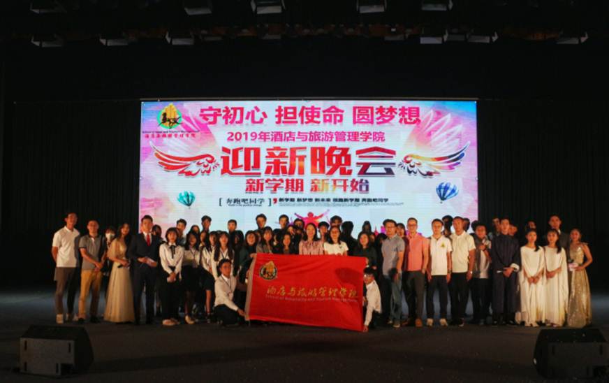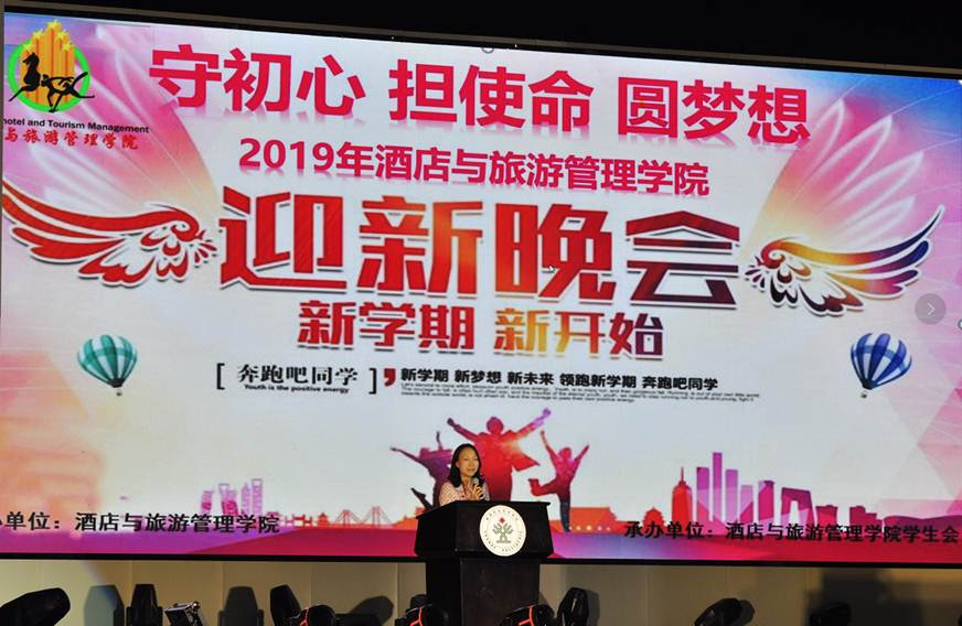 10月23日晚,酒店与旅游管理学院“守初心、担使命、圆梦想”2019级迎新晚会在德赢梁銶琚堂举行。校学工部、校团委、酒管学院相关负责人、2019级新生班主任、全体辅导员以及全体新生观看了本次演出。