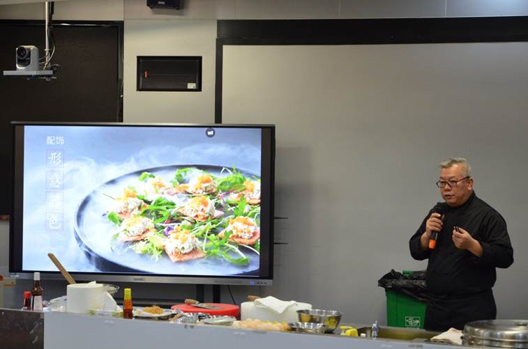 当天下午,本次审定会外审专家,北京明厨智造工作室余梅胜大师为德赢师生开设讲座,并现场烹制了三道中国创意菜。大师风趣的讲解、精湛的技艺得了现场师生的一致好评。
