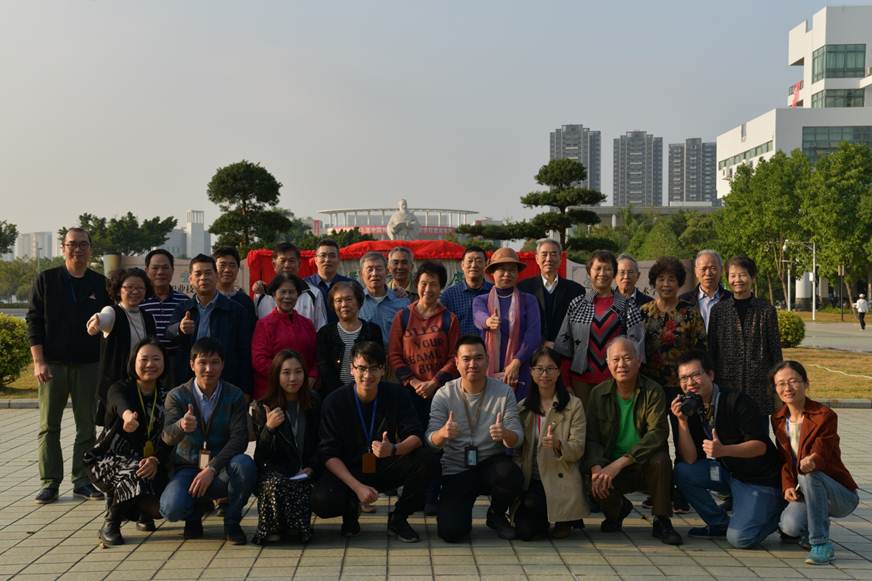 全体人员分别在新揭幕的校训石和墨子像前合影留念。参观结束,学院为退休教师进行了慰问,学校原常务副院长姜蕙、副院长陈礼参加了活动。