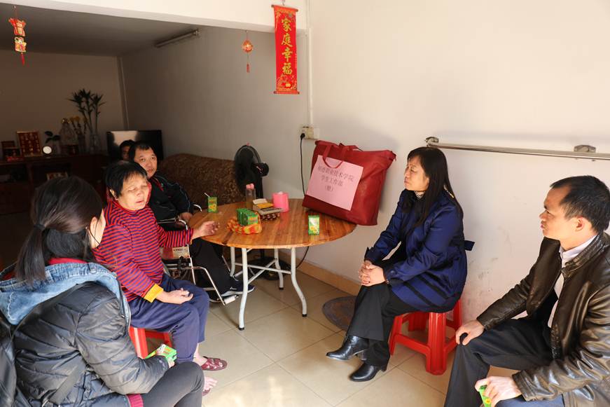 2020年1月15日,学生工作部全体老师先后到顺德伦教、杏坛、北滘等地走访了2019年部分因经济困难的受助学生家庭。在受助学生家庭走访活动中,学生工作部部长陈春艳一行向家长详细了解学生家庭情况及经济困难原因,并介绍学生在校学习、生活和奖助贷等受助情况。同时,结合国家资助、助学贷款及征兵优惠政策等,现场为减轻学生家庭经济困难献计献策。学工部老师们还鼓励学生不畏困难、迎难而上、拼搏奋进,响应党和国家“不忘初心、牢记使命”主题教育的号召,勇担当、敢作为,争取以优异的成绩报答母校,报效国家。