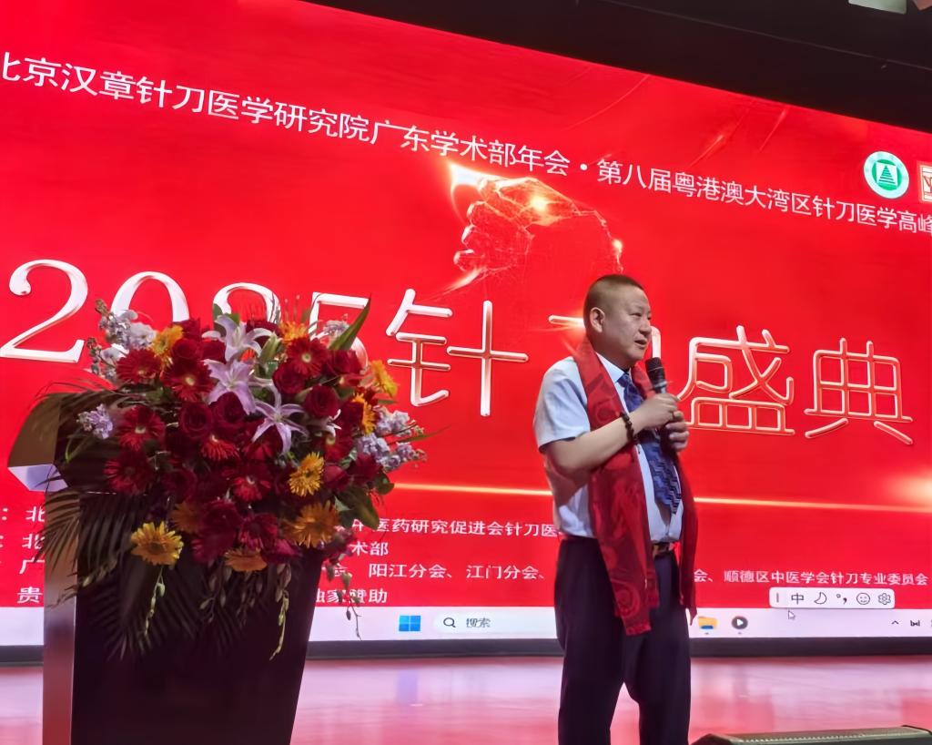 佛山市顺德区卫生健康局中医药科科长袁岳致辞并表示,针刀医学作为特色中医药技术,在顺德有着良好的发展基础。未来,卫生健康局将继续加大支持力度,推动针刀医学在顺德乃至粤港澳大湾区的普及与应用。