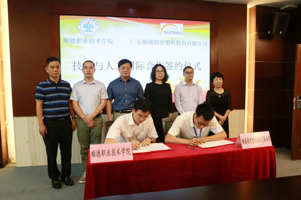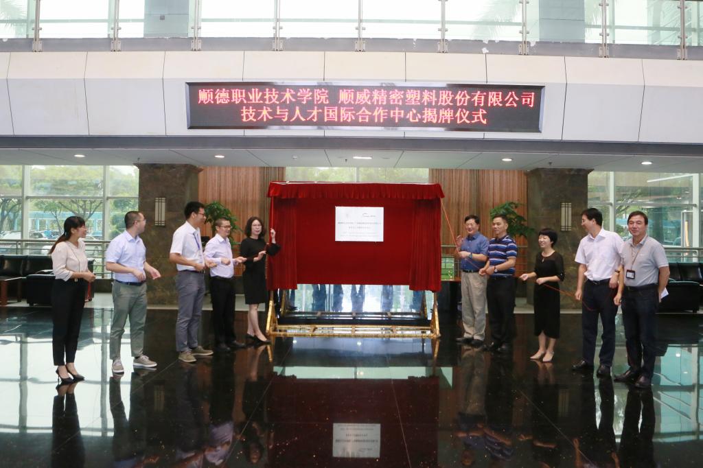 现场举行了签约仪式与揭牌仪式,学校与广东顺威精密塑料股份有限公司进行合作签约以及技术与人才国际合作中心揭牌仪式。
