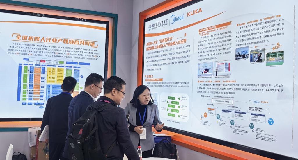 在“服务产业升级 服务区域发展”板块,德赢携手美的库卡围绕“全国机器人行业产教融合共同体”“顺职-库卡‘新匠星’计划精准赋能工业机器人产业新质人才培养”等主题进行展示,充分体现德赢作为珠江西岸唯一国家首批“双高计划”院校,紧密联合区域龙头企业,深化产教融合,服务产业升级,积极探索职业教育高质量发展新质路径的突出成效。
