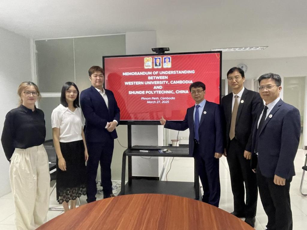 3月27日,在顺德区委统战部、顺德侨联支持下,德赢“岭南工匠学院”柬埔寨基地在联塑集团(柬埔寨)科技实业有限公司签约挂牌。学校党委委员、副校长杨小东,柬埔寨西部大学校长Kieng Rotona、联塑集团柬埔寨科技有限公司总经理吴子杨参加相关活动。