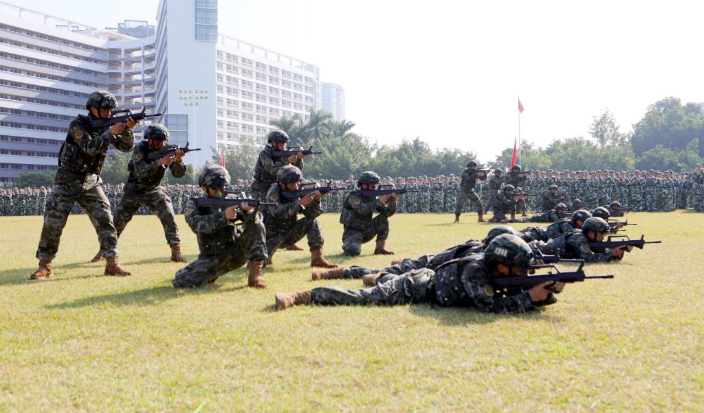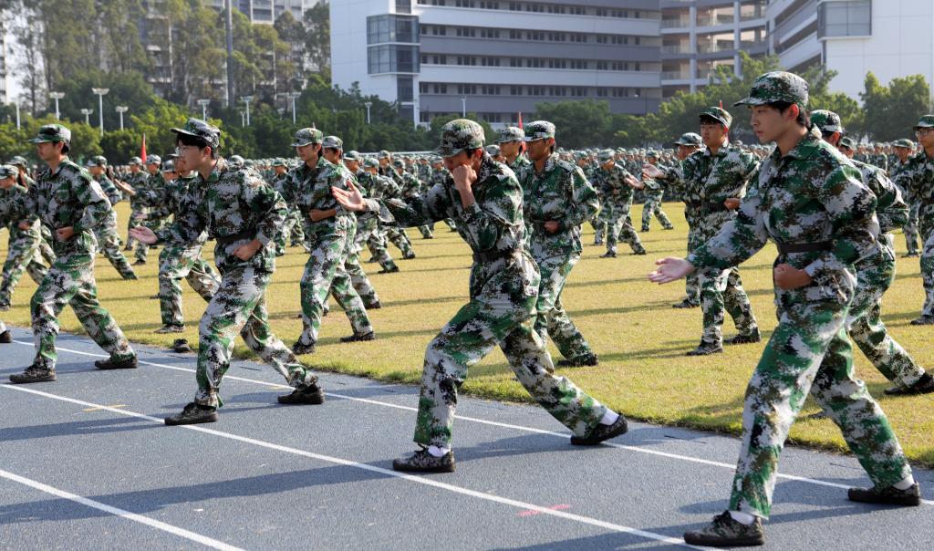 随后,新生和教官依次带来擒敌拳表演、捕俘刀表演、战术动作表演、战术对抗演练,赢得现场师生的阵阵掌声和喝彩。