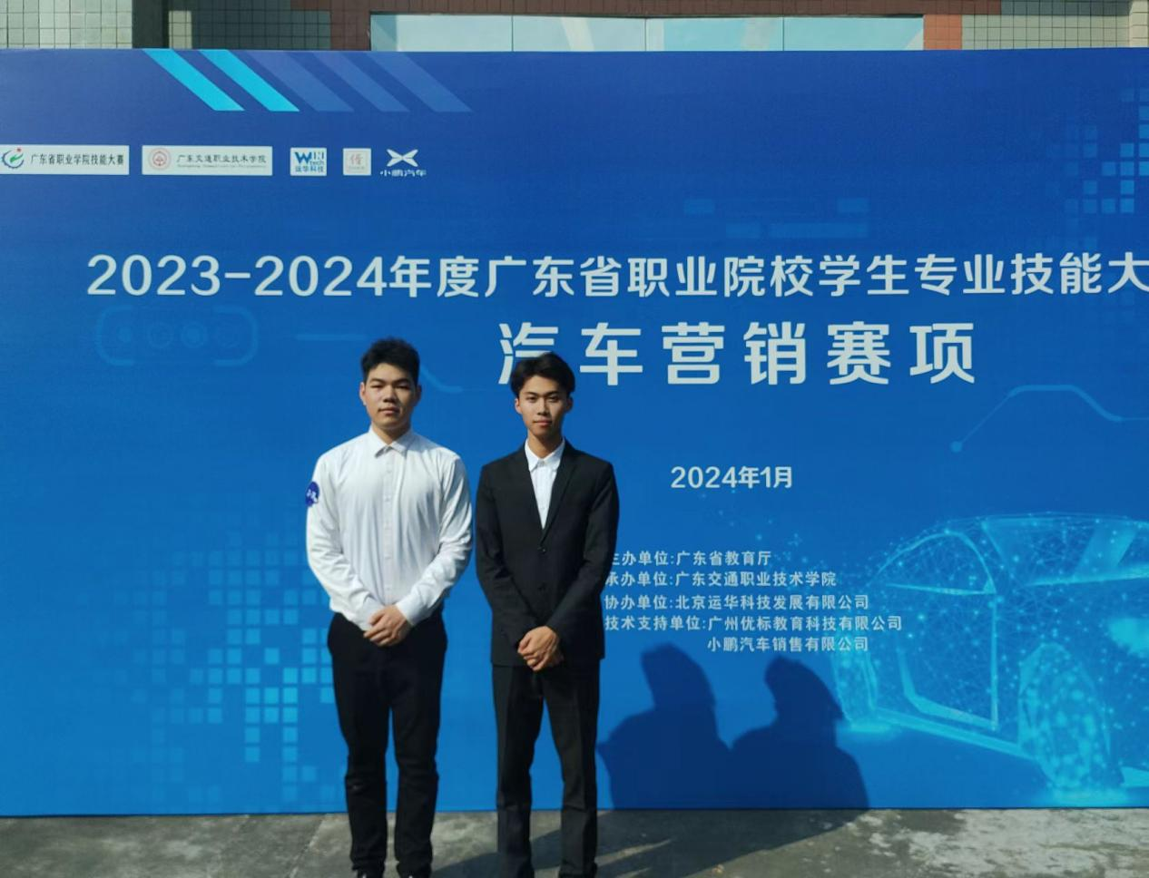 1月6日至7日,2023-2024年广东省职业院校学生专业技能大赛汽车营销赛项在广东交通职业技术学院举办。来自全省42所高职院校的42支队伍参与角逐,德赢能源与汽车工程学院学生苏浩、符峰玮(指导老师:丘利芳、赖燕君)在比赛中获一等奖,总分排名第三,成功晋级国赛。