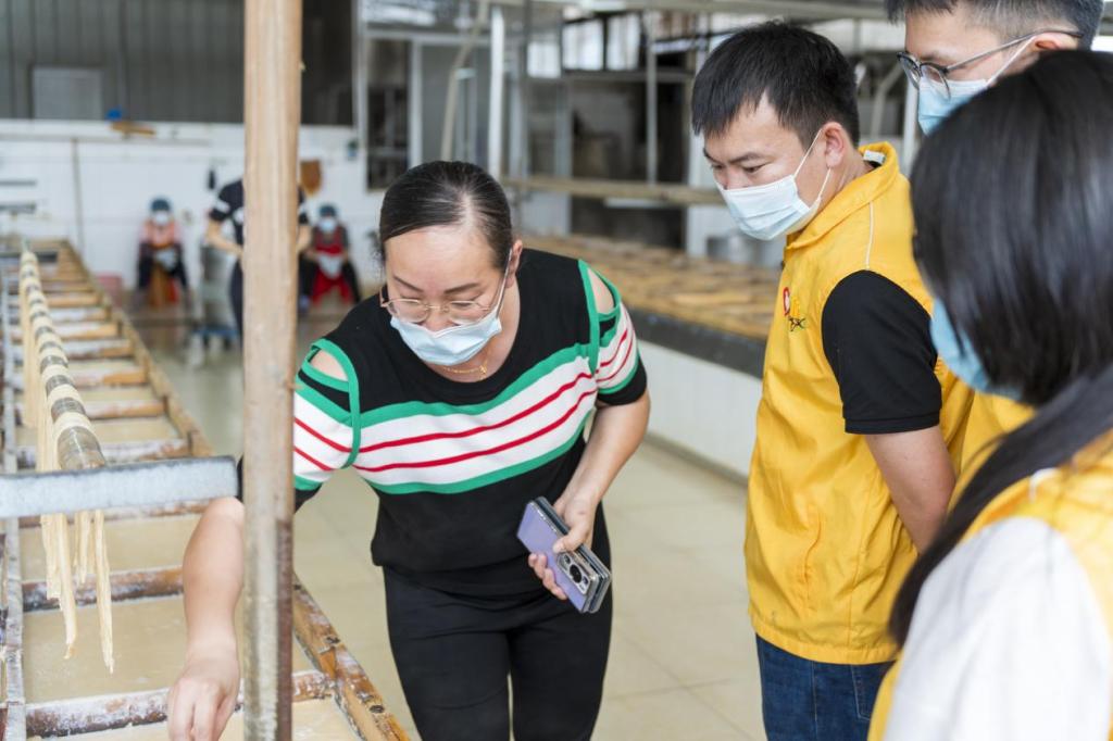 突击队成员深入六祖镇白鹿台食品厂、新兴合益花生油生产厂、云河村丝苗米生产基地等在当地具有历史悠久的工厂基地,通过现场访谈、参与体验等形式,全面了解新兴县东成镇农产品资源现状和市场潜力,为促进酒管学院“双百行动”直播带货项目落地打下基础。