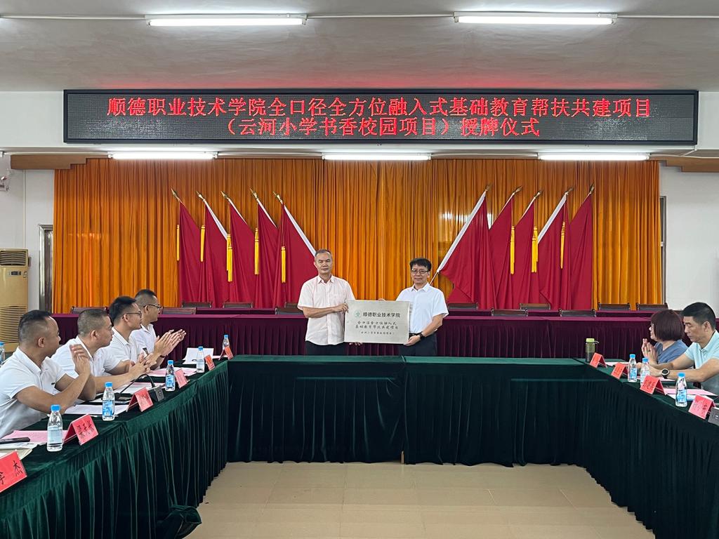 会上,杨小东代表学校为“顺德职业技术学院全口径全方位融入式基础教育帮扶共建项目(云河小学书香校园项目)”授牌,云河小学回赠德赢“奉献爱心捐书助学”牌匾。与会人员共同观看东成镇宣传短片。德赢驻村干部富译萱汇报帮扶工作阶段性成效和下一步工作计划。与会人员就工作中的问题进行探讨。