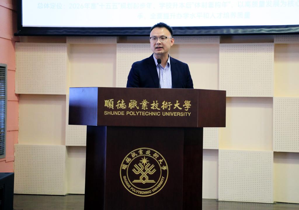 学校党委委员、副校长李天赠聚焦“重构”“实干”两个关键词,提出以高质量发展为主题,以内涵建设为主线,聚焦“三个转变”(从“规模扩张”向“内涵提质”转变,从“单点突破”向“生态重构”转变,从“被动适应”向“主动赋能”转变),通过系统性重塑,推动实施人才强校、服务赋能、固本培优、立德树人、融合创新等五大工程,奋力蹚出一条具有顺德特色的职业本科发展新路。